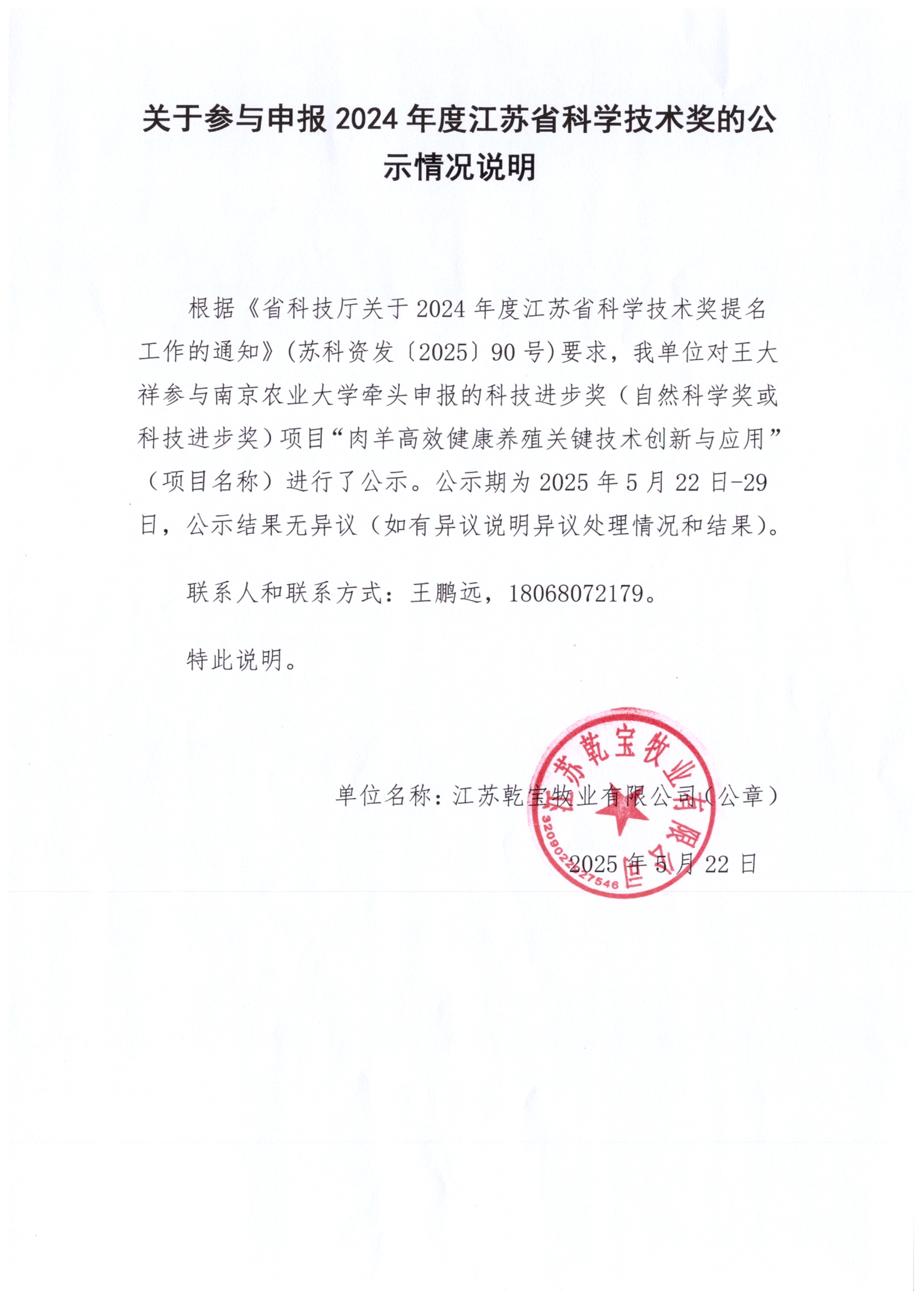 5月29日,江蘇省畜牧業(yè)協(xié)會在南京舉行成立大會,乾寶牧業(yè)公司董事長王躍程、總裁蔣柏林出席會議,乾寶牧業(yè)有限公司當選江蘇省畜牧業(yè)協(xié)會首屆會長單位,王躍程董事長當選為羊業(yè)分會會長。 ●大會會場王躍程董事長在座談會上發(fā)言,介紹了江蘇乾寶牧業(yè)公司發(fā)展情況,重點介紹了湖羊種質資源保護利用取得的成就及今后的發(fā)展規(guī)劃,并表示將攜手全省羊業(yè)企業(yè),進一步做好我省羊業(yè)種質資源保護、育繁和飼養(yǎng)工作,堅決打好江蘇羊業(yè)發(fā)展...